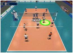 ZONA DE ATAQUE: Em cada quadra a zona de ataque é limitada pelo eixo da linha central e a linha de ataque traçada 3m atrás deste eixo (com a largura da linha incluída). Nas competições mundiais da FIVB, a linha de ataque é prolongada em ambos os lados da quadra, adicionando-se cinco pequenas linhas de 15 cm de comprimento por cinco cm de largura e 20 cm de distância entre cada uma, perfazendo um total de 1,75m de extensão. Considera-se que a zona de ataque estende-se além das linhas laterais até o final da zona livre.